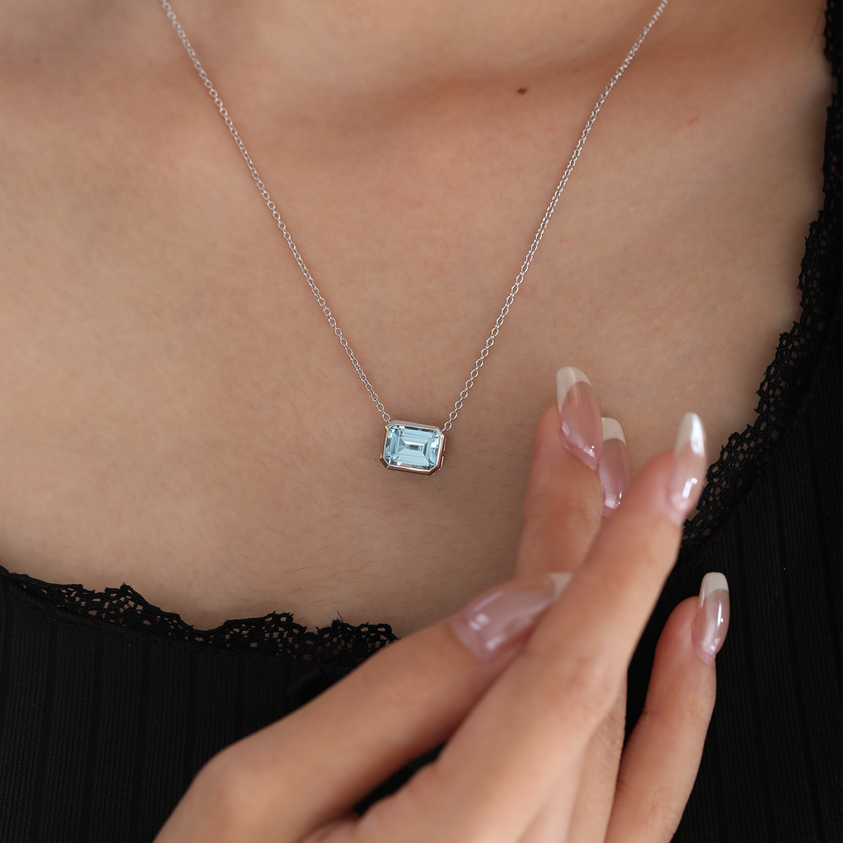 Elevate your elegance with this 14K White Gold 3ct Aquamarine Blue Emerald Cut Lab Corundum Bezel Pendant Necklace. Featuring a stunning 3-carat emerald-cut lab-created corundum, this pendant radiates a captivating aquamarine blue hue, symbolizing serenity and sophistication. The sleek bezel setting ensures a modern, refined look while enhancing the gemstone’s brilliance. Crafted in 14K white gold, this pendant offers a timeless appeal, making it perfect for both everyday wear and special occasions. Suspended from a delicate chain, this necklace is a must-have for those who adore classic beauty with a contemporary twist.