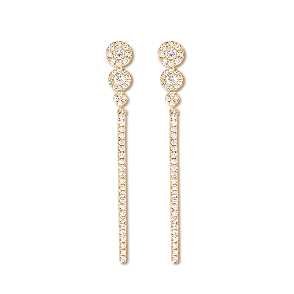 Timeless elegance meets dazzling sparkle in our 18K Yellow Gold Drop Earrings. Featuring round cut lab-grown diamonds in a pavé setting, these earrings shimmer with every movement, cascading gracefully for a sophisticated look. Crafted from warm yellow gold, they are perfect for special occasions or adding luxury to your everyday style. Ideal for those seeking pavé diamond drops, classic fine jewelry, or sustainably crafted pieces with lasting brilliance and charm.
