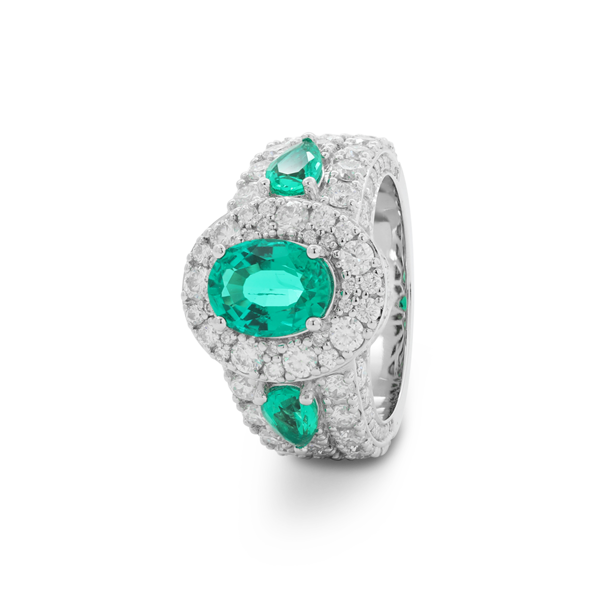 | Side-stone 1 | 2 pieces of 6*4mm pear cut lab emerald, about 0.8 ct tw |