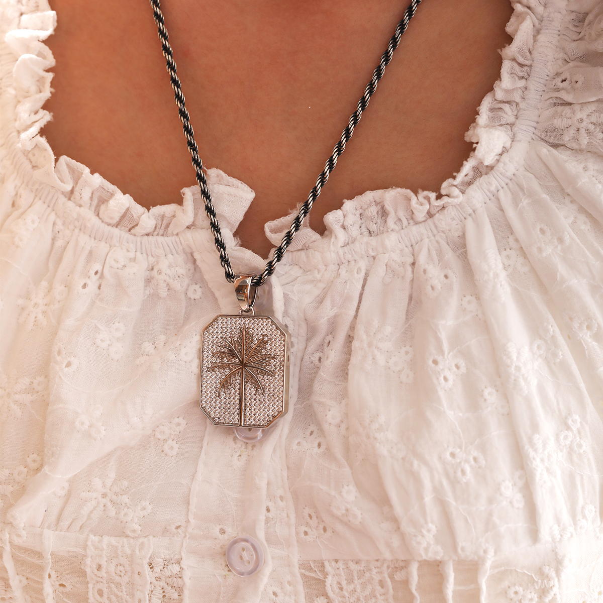 Delicate and stylish, our 14K White Gold Palm Pendant Necklace features a graceful palm leaf design adorned with sparkling round lab-grown diamond pavé accents. Crafted in luminous white gold, this pendant captures tropical elegance and modern sophistication in one versatile piece. Perfect for everyday wear or as a unique gift, it’s ideal for those seeking nature-inspired jewelry, diamond pavé pendants, or sustainably crafted fine accessories with a fresh, chic vibe.