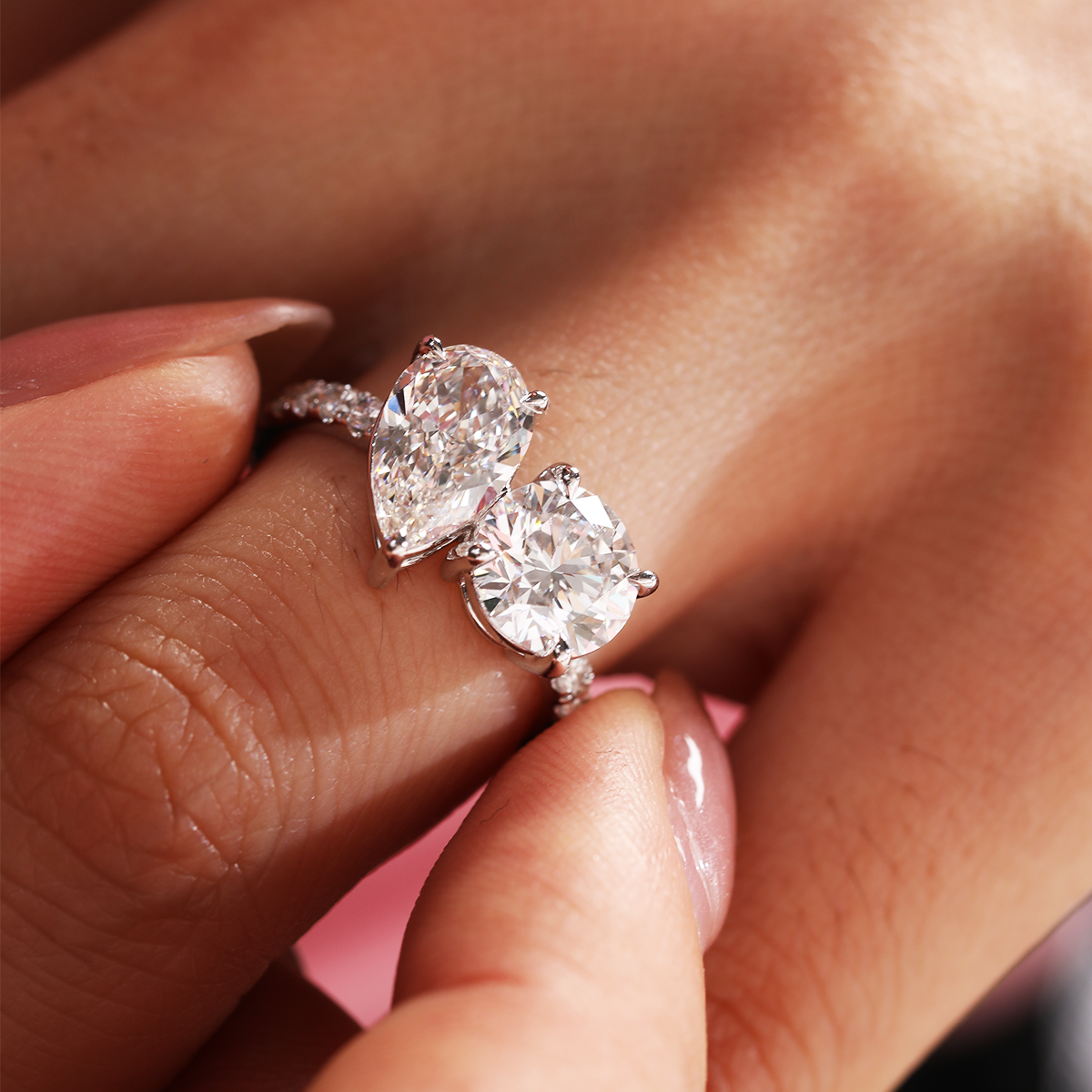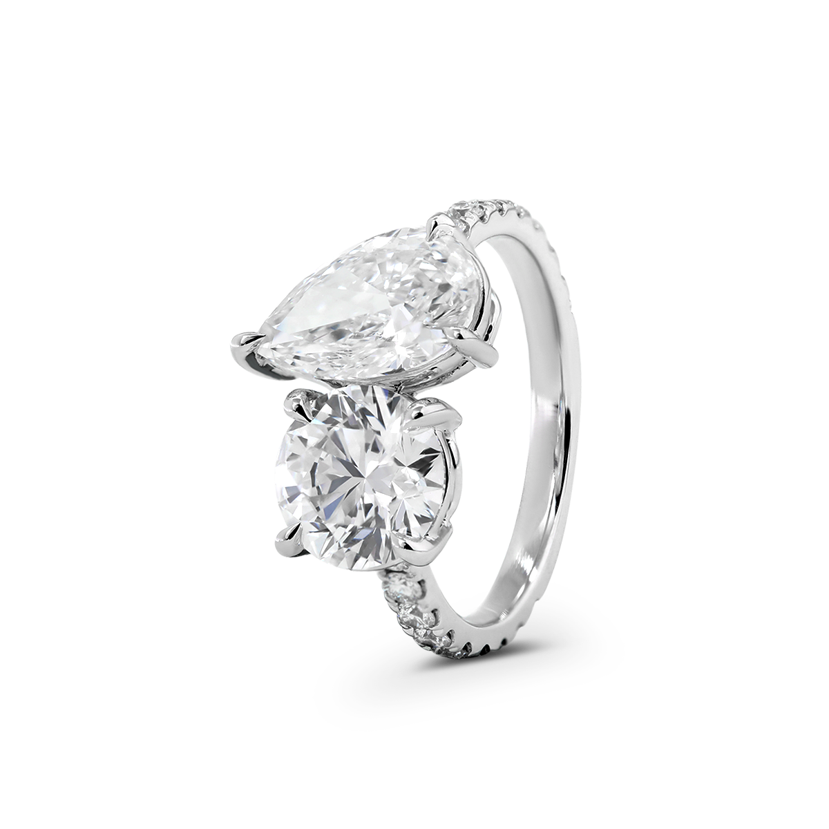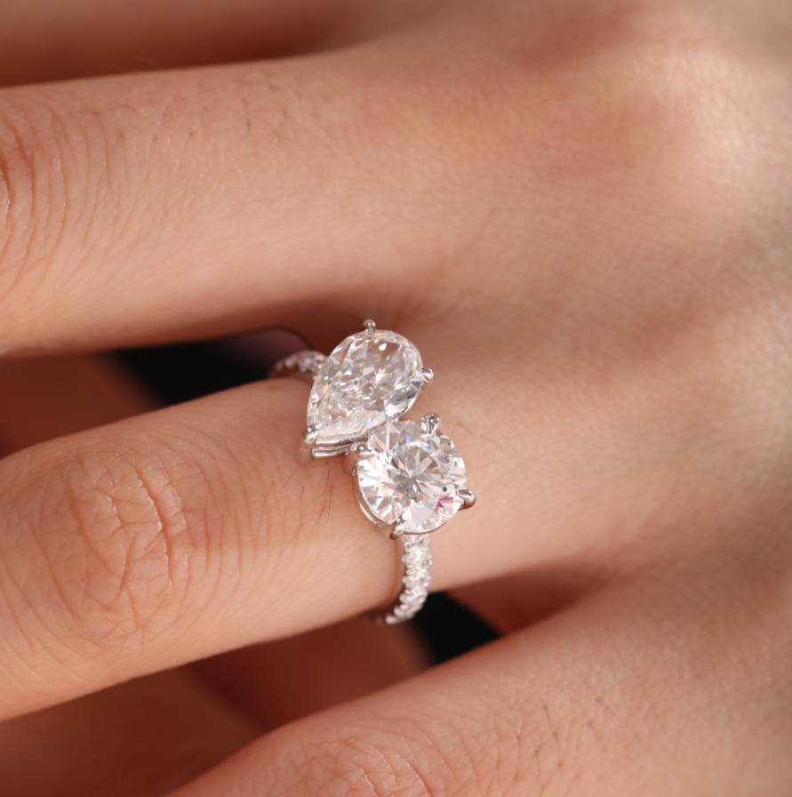 A symbol of two souls, one love — our 14K White Gold Toi et Moi Ring features a captivating duet of round and pear-shaped lab-grown diamonds, elegantly set side by side. The pave-set band adds extra sparkle, enhancing the brilliance of this romantic design. Crafted in polished white gold, this ring is perfect for engagements or meaningful milestones. Ideal for those seeking toi et moi diamond rings, unique lab diamond styles, or timeless sustainable fine jewelry with a modern twist.
