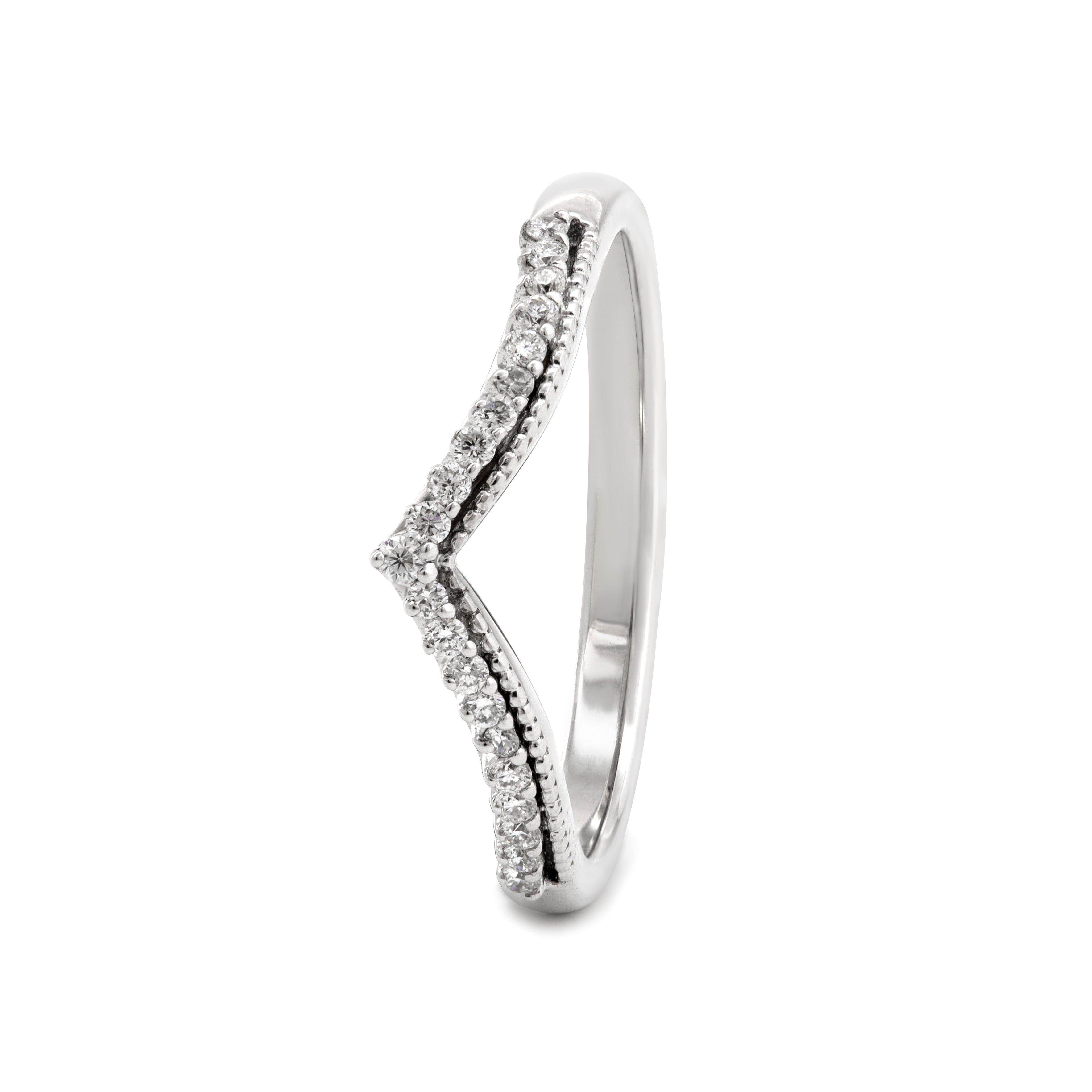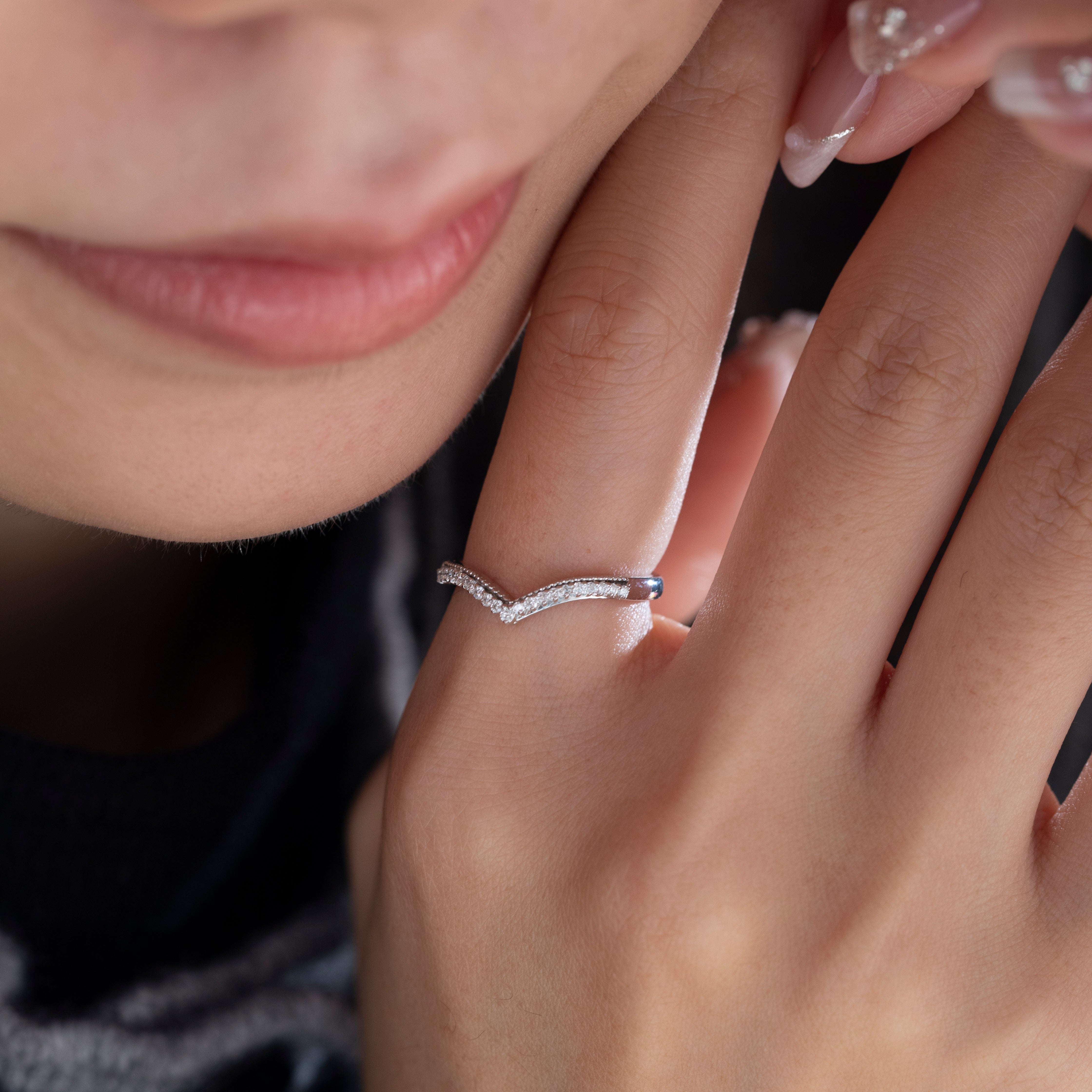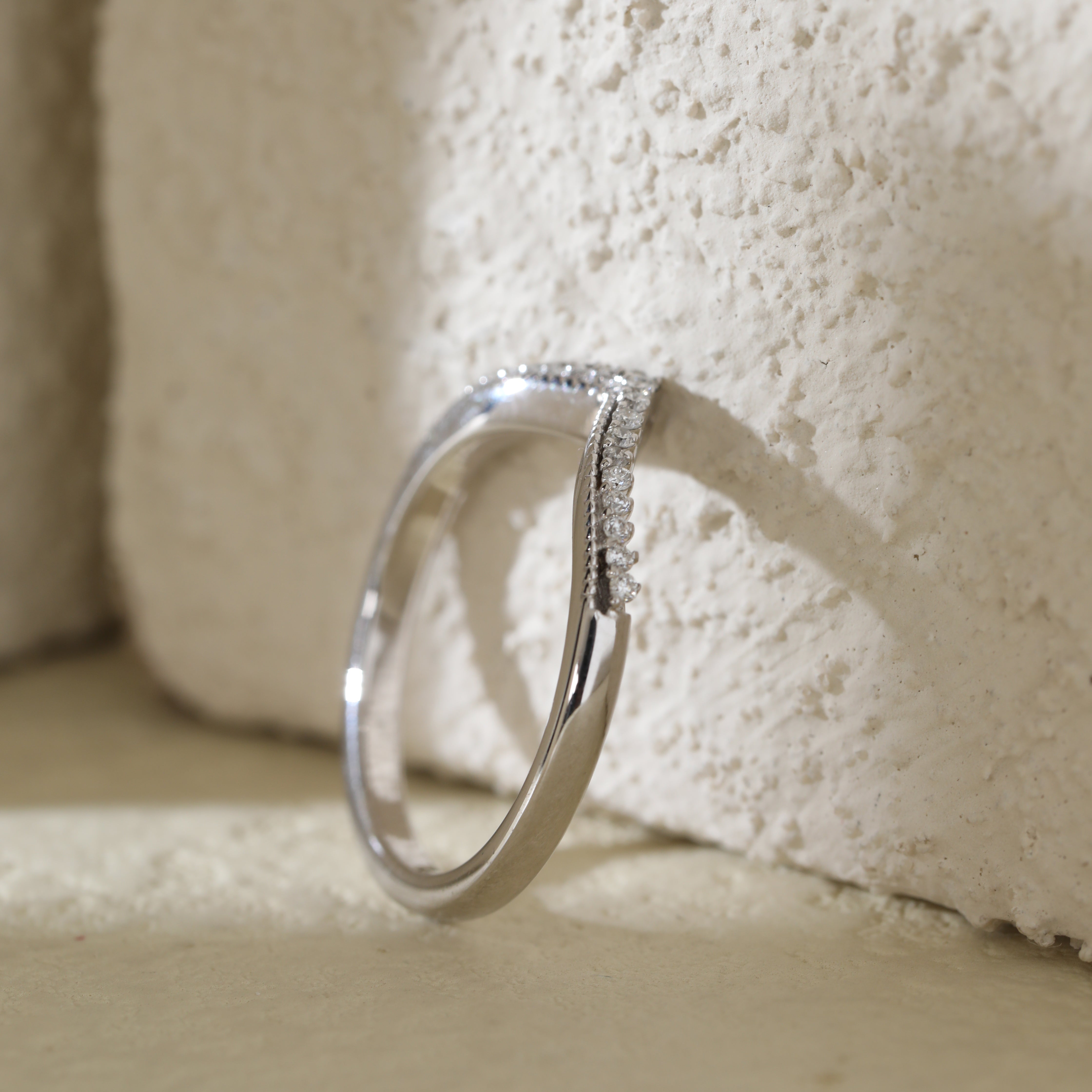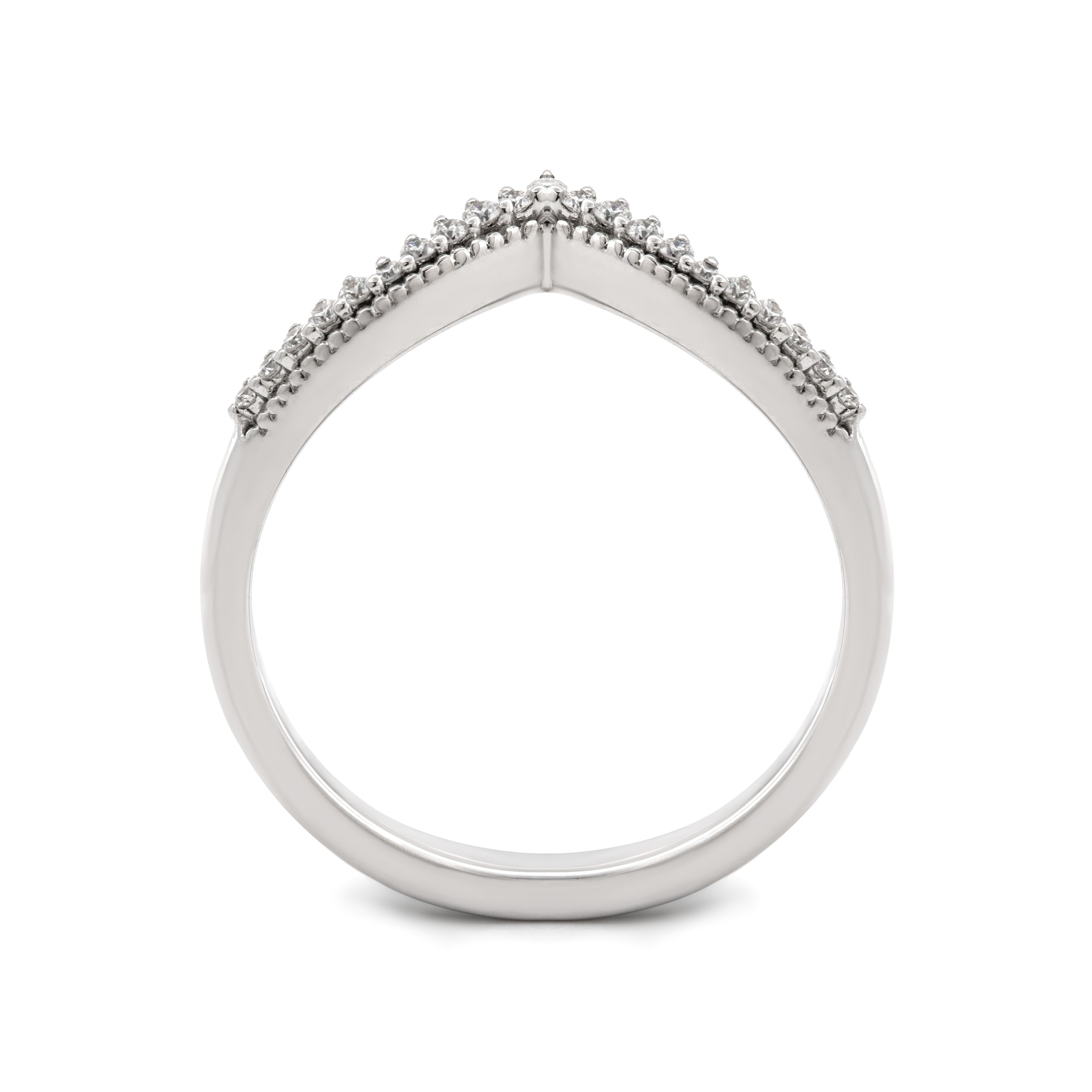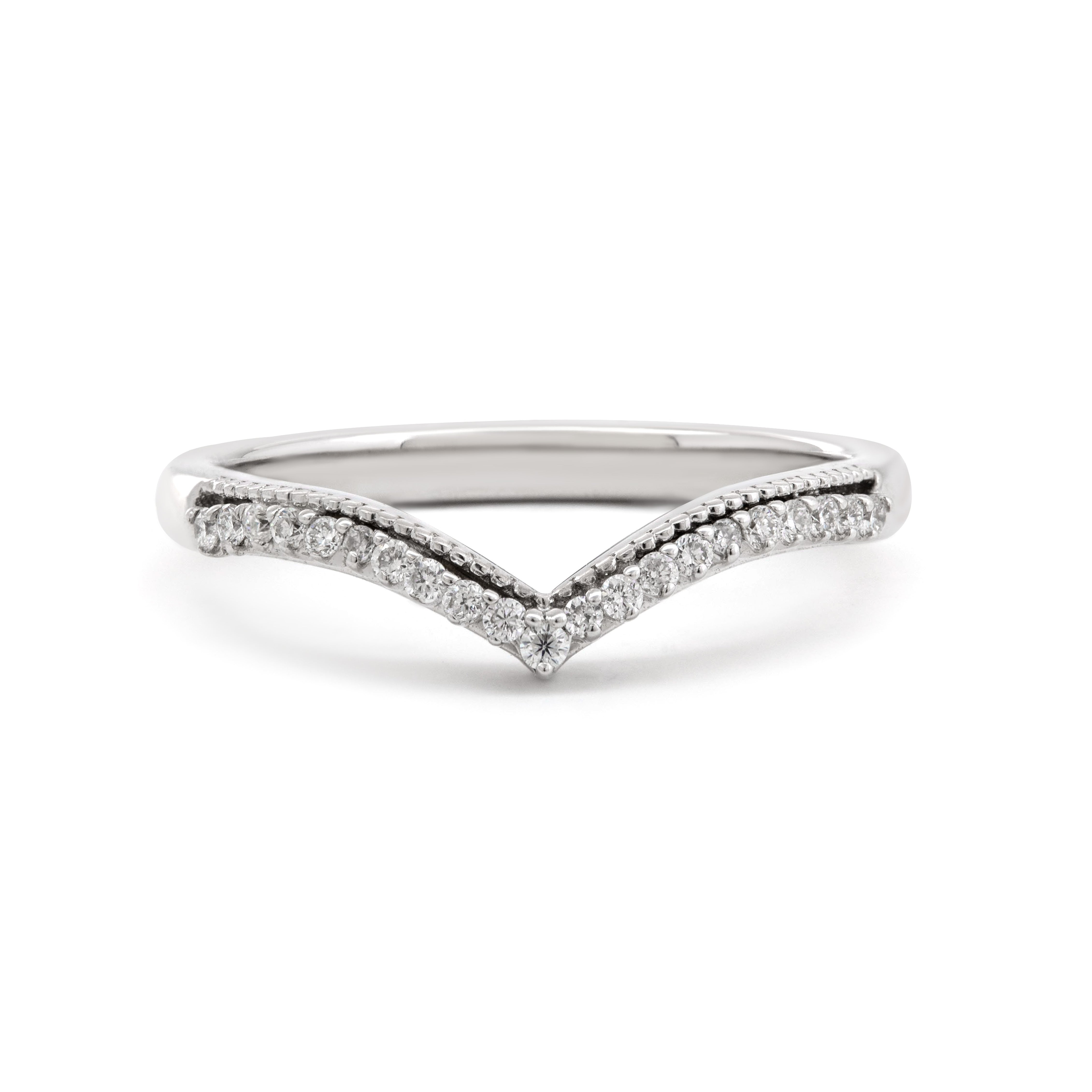 Celebrate your love with this 14K White Gold Round Lab Diamond V-Shape Millegrain Wedding Ring, a perfect blend of vintage charm and modern elegance. The V-shaped design gracefully contours to your engagement ring, enhancing its brilliance with a row of sparkling lab-created round diamonds. Delicate millegrain detailing adds a touch of old-world sophistication, while the 14K white gold setting provides a luminous, timeless appeal. Whether worn alone or stacked, this wedding band exudes grace and refinement. A stunning symbol of your everlasting commitment, this diamond wedding ring is perfect for brides who love classic beauty with a vintage twist.