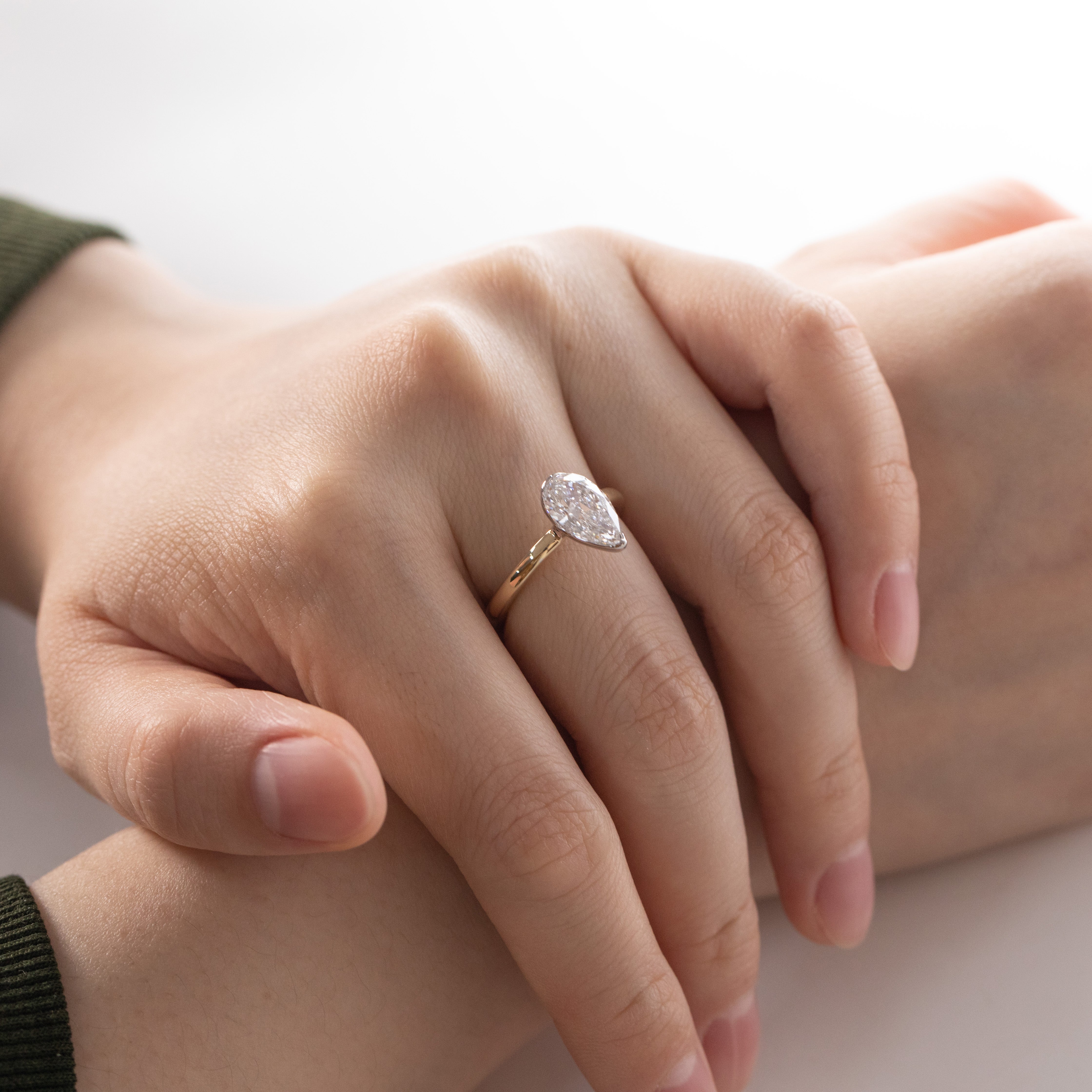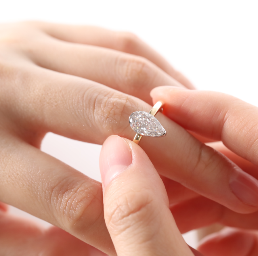 | Center Stone | 2ct Pear cut lab diamond F VS, about 10*6mm |