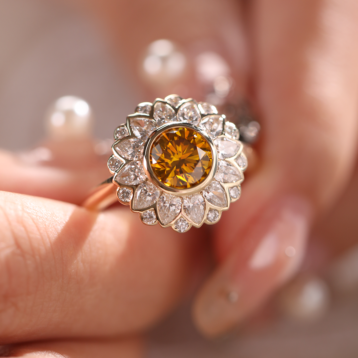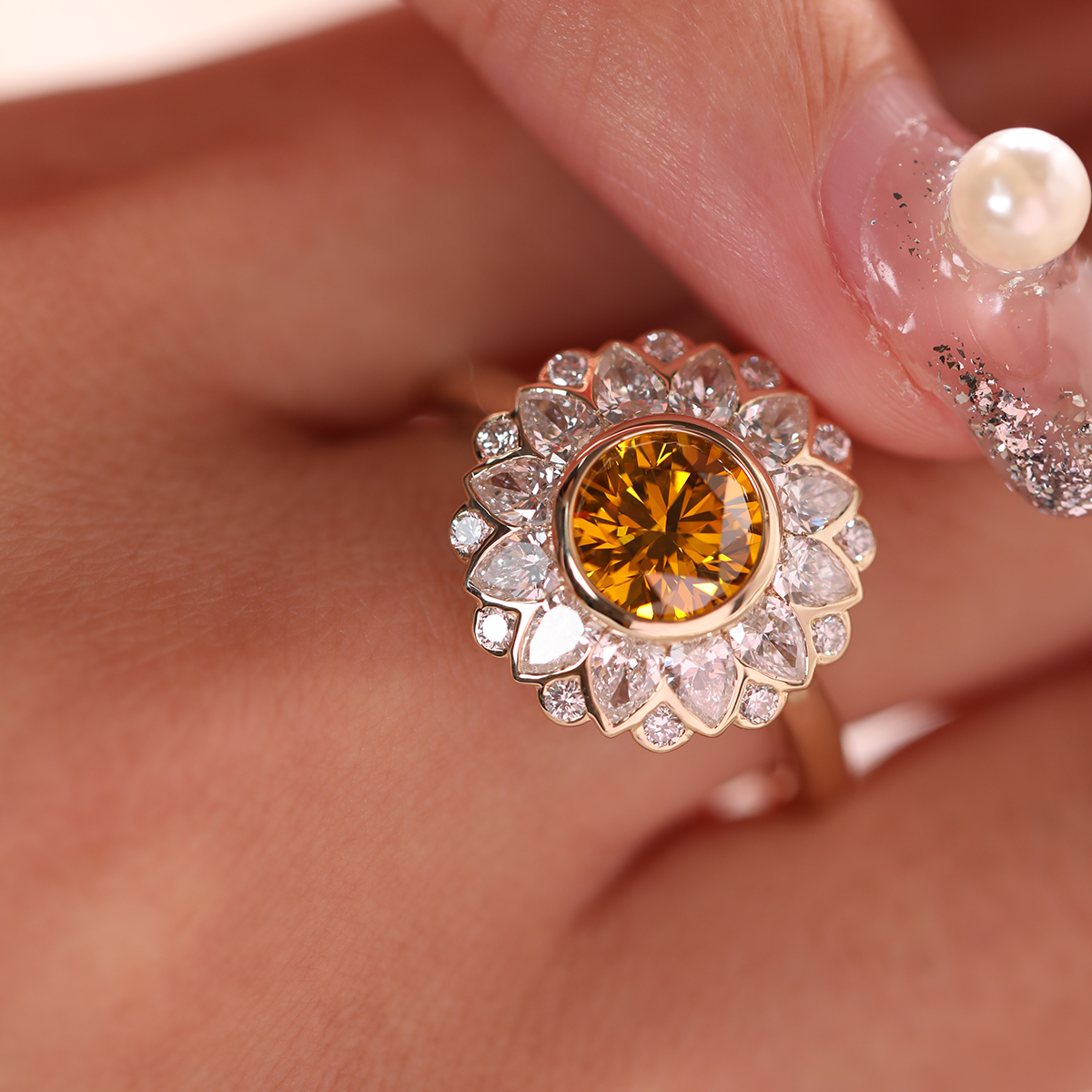 | Center Stone | 1.3ct round cut lab diamond Yellow VS, about 7mm |