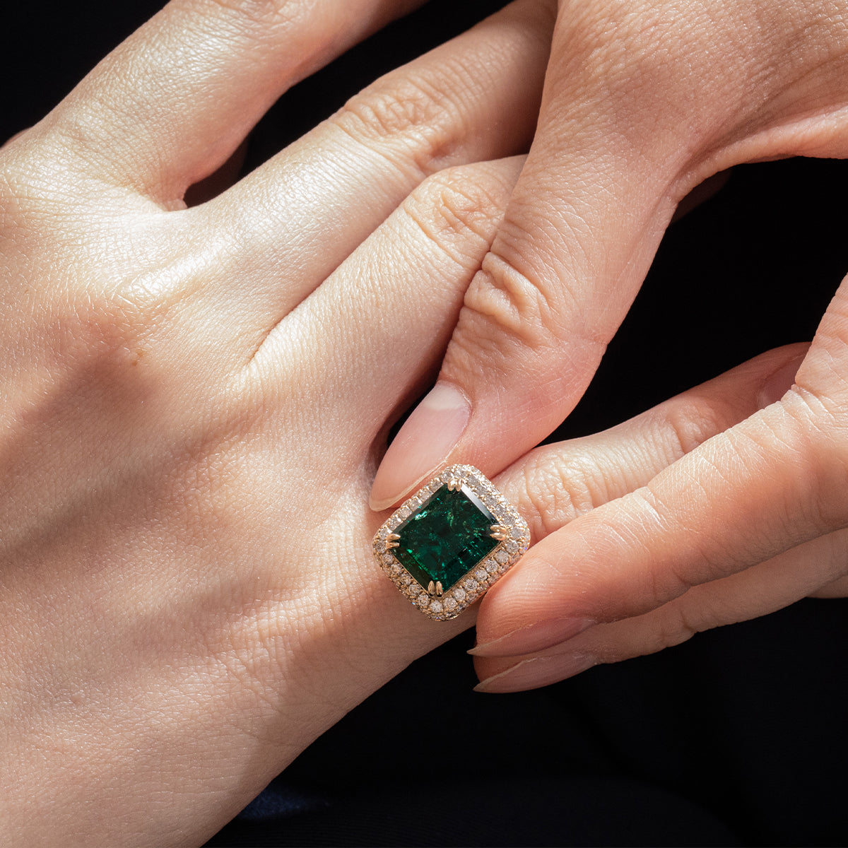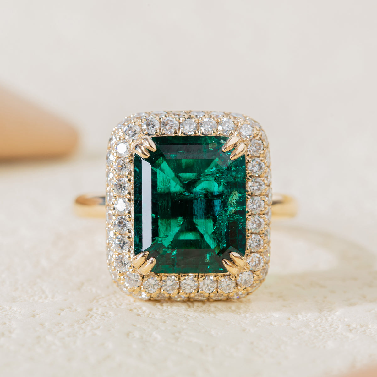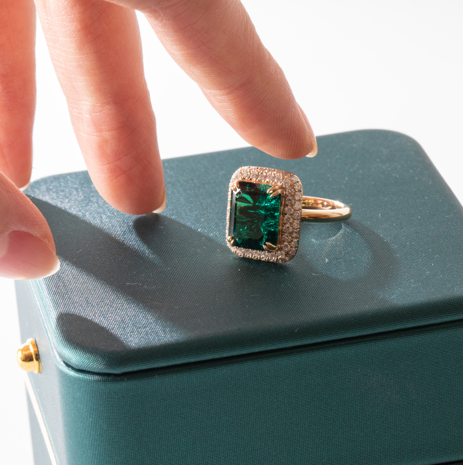 | Center Stone | 11*9mm emerald cut zambian lab emerald, about 3.5ct |
