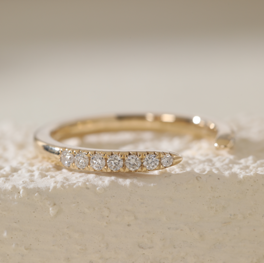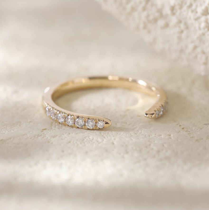 Delicate with a modern twist, our 14K Yellow Gold Half Eternity Open Ring features brilliant round lab-grown diamonds gracefully set along an open band design. Crafted in warm 14K yellow gold, this ring offers a fresh, airy feel while delivering timeless sparkle. Perfect for stacking or wearing solo, it’s ideal for those seeking minimalist diamond rings, lab-grown diamond open bands, or ethically crafted fine jewelry with a contemporary edge. A versatile piece that blends everyday elegance with sustainable luxury.