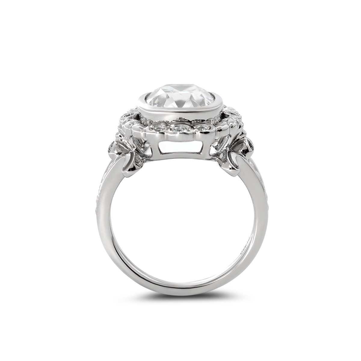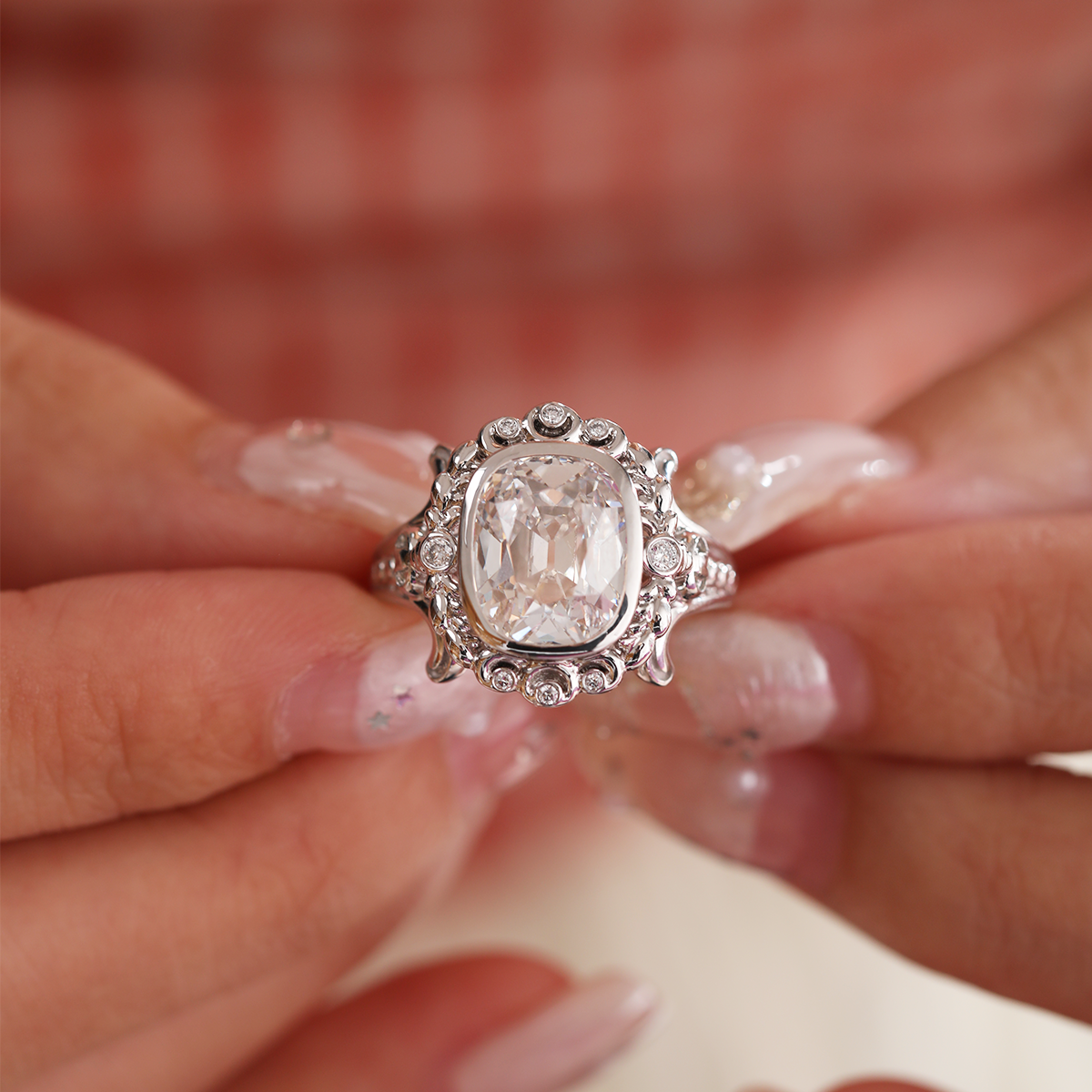 | Center Stones | 4.5ct elongated old mine cut lab diamond F VS, about 10.5*8.4mm, ratio 1.25 Customization is required |