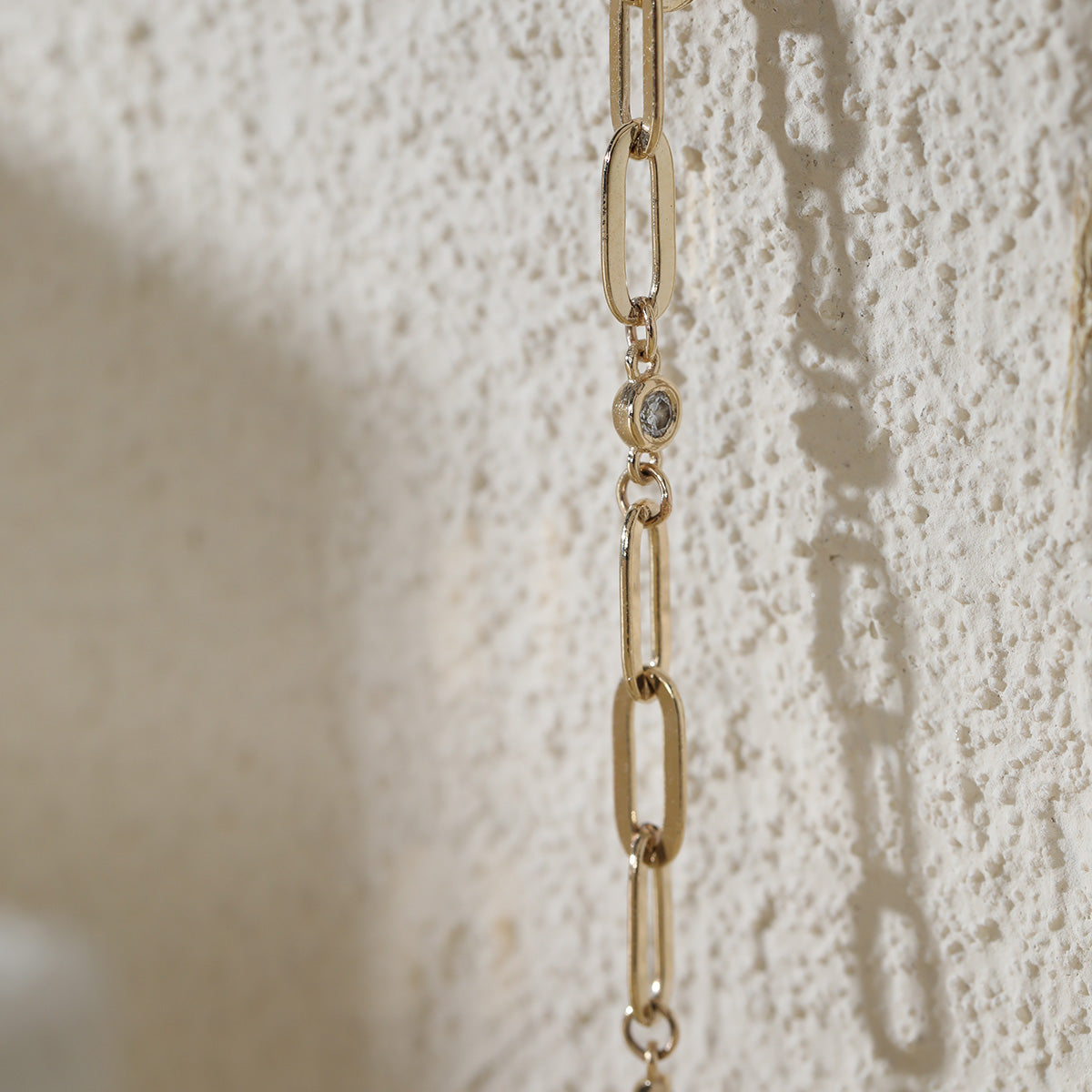 Grace meets modern minimalism in our 14K Yellow Gold Round Lab Diamond Cross Squashed Chain Station Necklace. Featuring a delicate cross adorned with sparkling round lab-grown diamonds, this piece is set along a unique squashed chain for added texture and contemporary flair. Crafted in warm 14K yellow gold, it’s perfect for layering or wearing solo as a meaningful everyday accessory. Ideal for those searching for diamond cross necklaces, lab-grown diamond jewelry, or minimalist gold station necklaces with spiritual elegance and ethical sparkle.